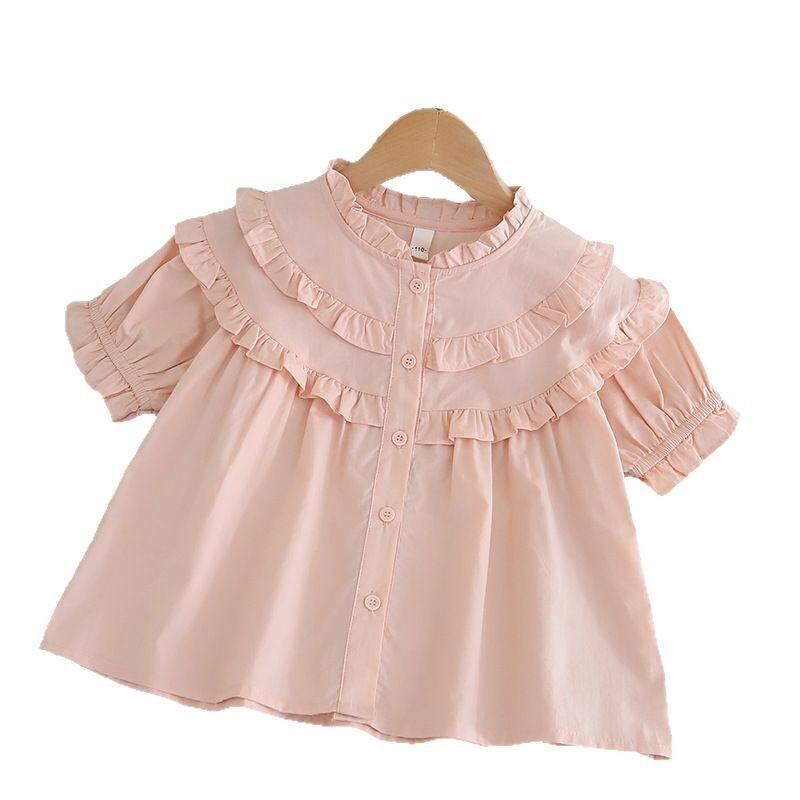 ブラウス 女の子 キッズ 半袖 トップス かわいい 韓国風 綿100% 白 ピンク 子供服 夏服 柔らか 普段使い 通学 おしゃれ