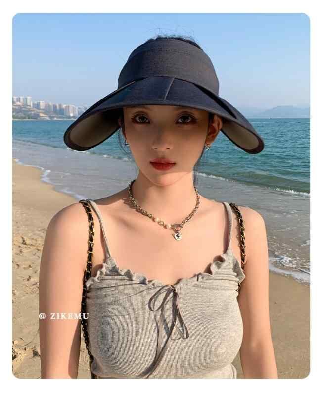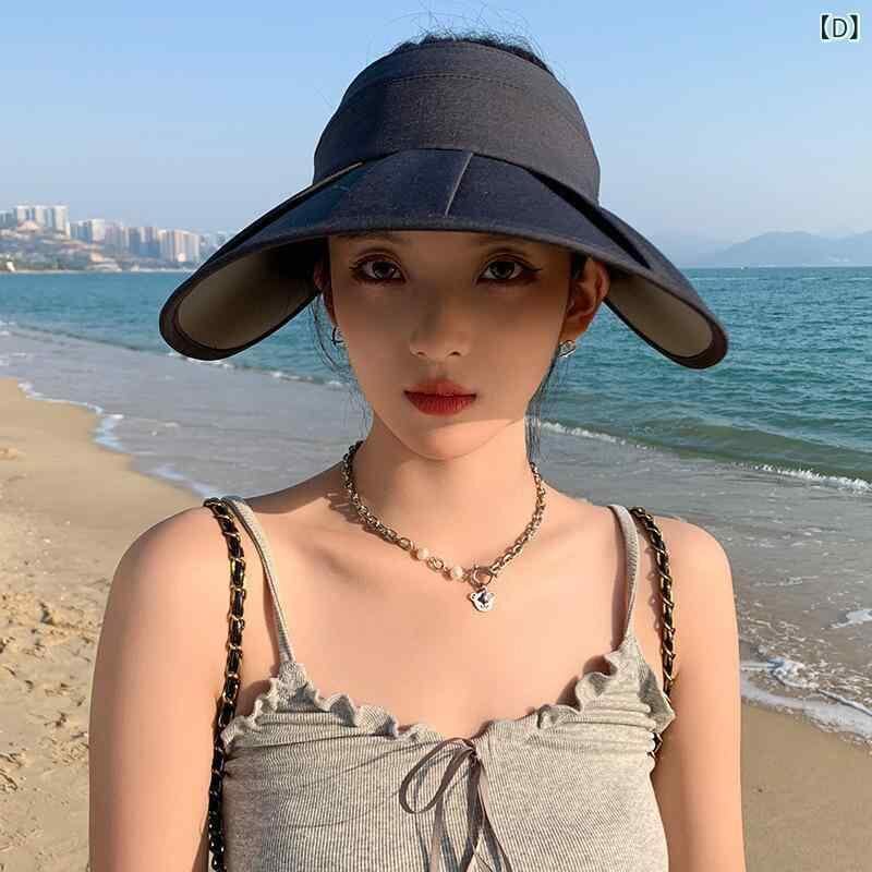 UVカットハット レディース 女性用 夏用 つば広 プリーツつば 紫外線対策 日焼け防止 通気性 ポリエステル 遮光 韓国風 ファッション おしゃれ ブラック 黒