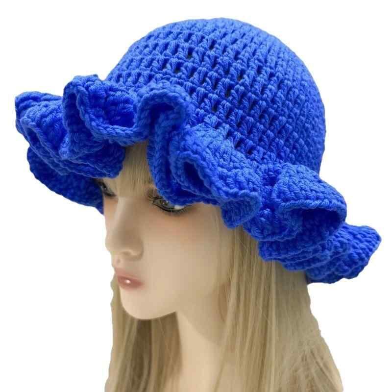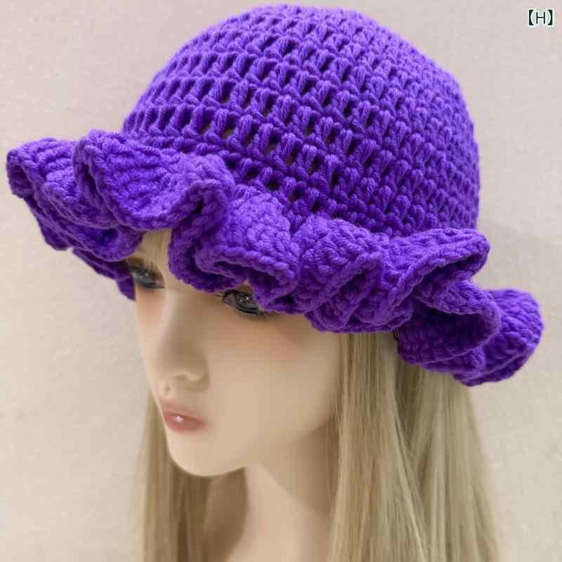 ニット帽 レディース 無地 フリル かぎ針編み つば広ハット アクリル かわいい 小顔効果 UVカット 日よけ 紫外線対策 防寒 保温 軽量 柔らかい オールシーズン カジュアル お出かけ 旅行 普段使い