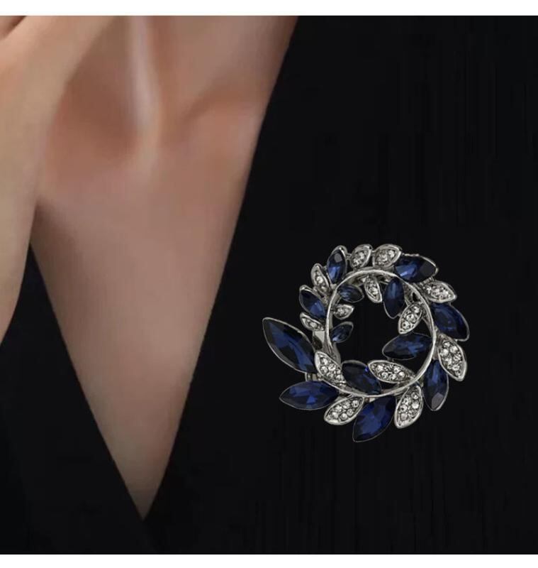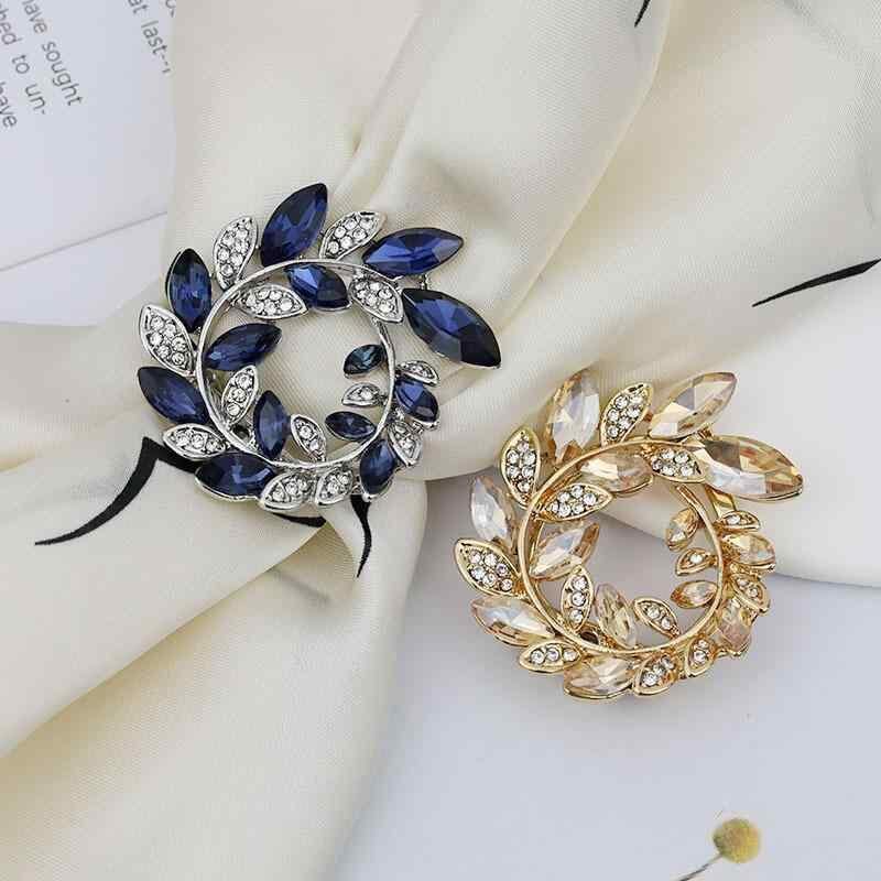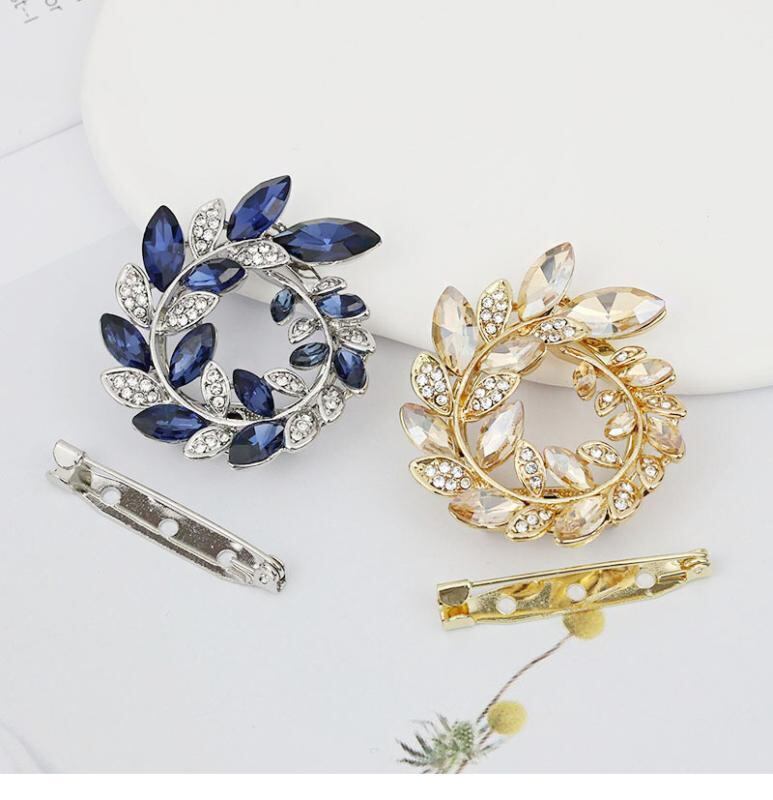 ブローチ レディース 韓国風 オリーブの枝 リーフ 花モチーフ 合金製 スカーフクリップ スカーフ留め ストール留め 2WAY 上品 エレガント 高級感 華やか 胸元アクセサリー 服飾小物