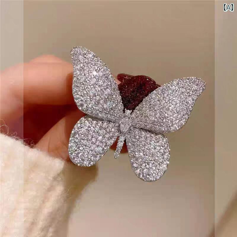 胸針 レディース エレガント 蝶々 バタフライ ラインストーン 高級感 繊細 デザイン 個性的 合金製 電鍍加工 シルバー ゴールドカラー スーツ ジャケット フォーマル 普段使い ファッション小物 ピンブローチ