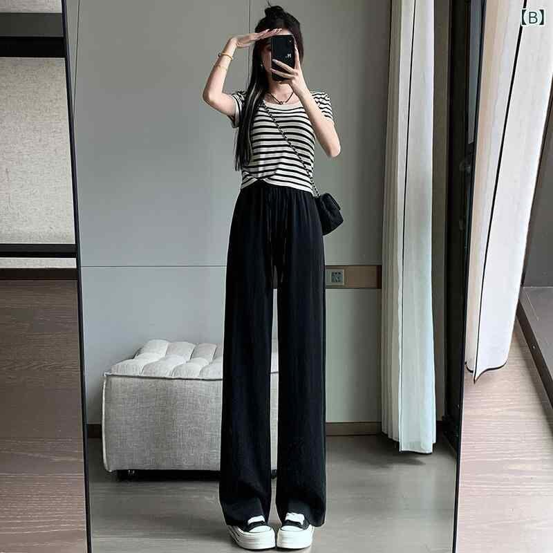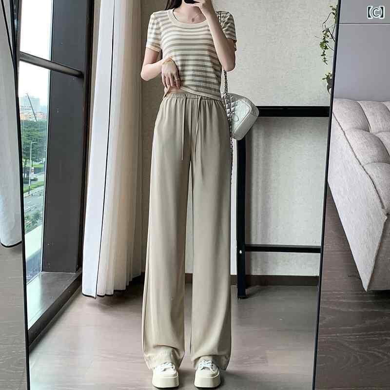 カジュアルパンツ レディース 低身長向け 夏 薄手 軽量 ゆったり ストレートパンツ ストレッチ素材 伸縮性 ロング アンクル丈 通勤 オフィス 普段使い きれいめ ブラック ベージュ