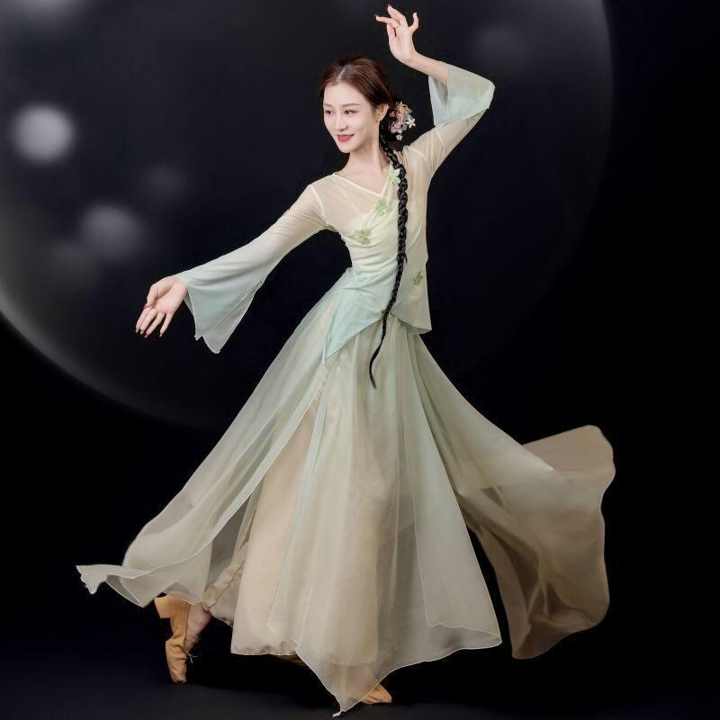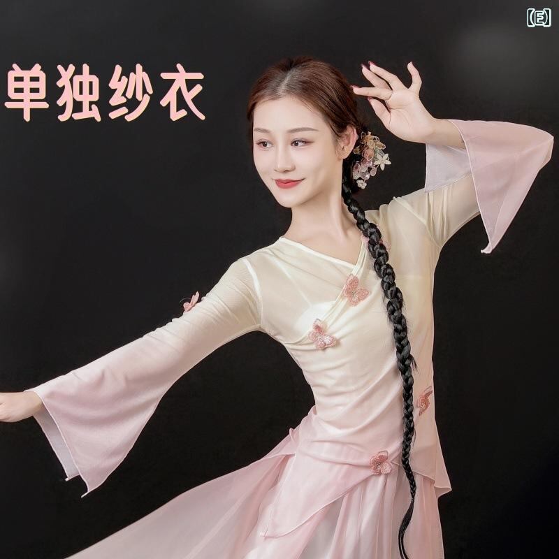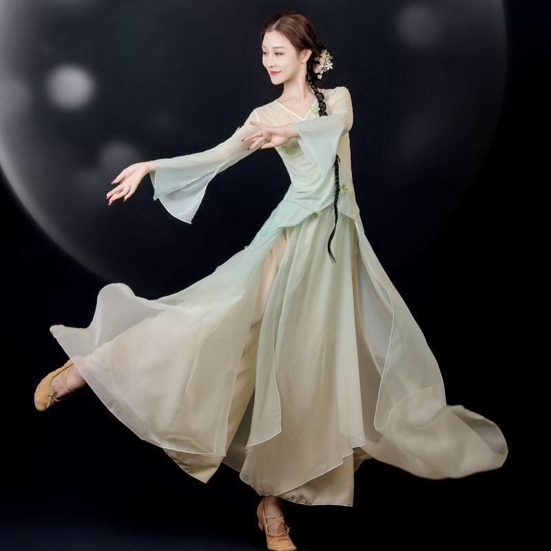 ダンスウェア メンズ クラシックダンス 舞台衣装 発表会 練習着 シフォン ポリエステル製 蝶モチーフ 透け感トップス 優雅な流れるシルエット グラデーション スカートパンツ セットアップ