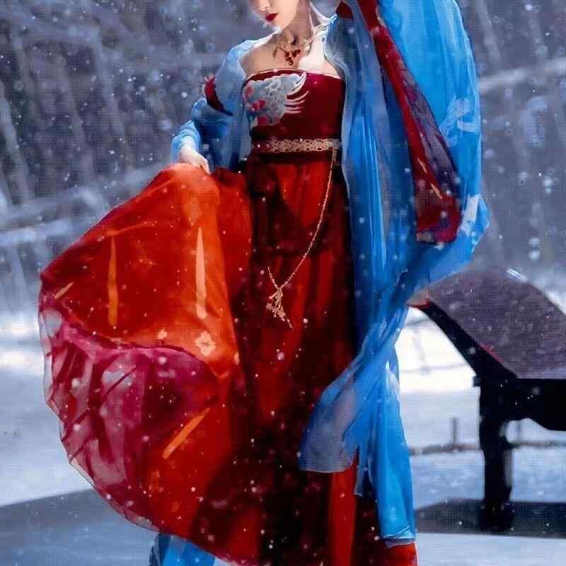 ダンス衣装 レディース 漢服 唐代風 ヘーズーチュン 大人用 古典舞 民族舞 舞台 演出 パフォーマンス ポリエステル 優雅 軽やか ロングスカート