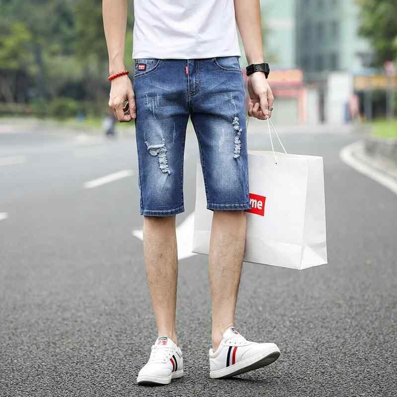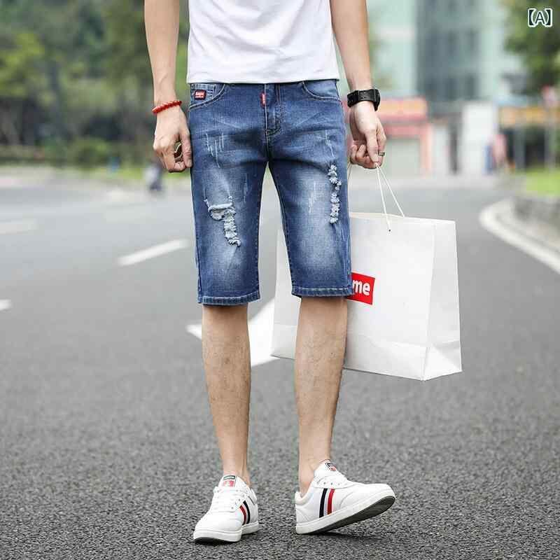 デニム メンズ 男性用 接触冷感 薄手 綿素材 高ストレッチ ゆったり ストレート ハーフパンツ 5分丈 7分丈 カジュアル スポーツ 夏