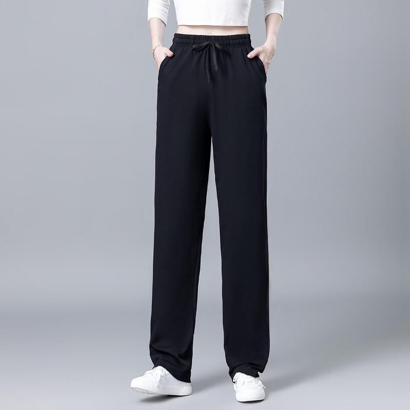カジュアルパンツ レディース 夏 薄手 長ズボン 大きいサイズ ゆったり ストレート スポーツ ルームウェア 部屋着 普段使い ハイウエスト 綿 ストレッチ 通気性 着痩せ 脚長効果