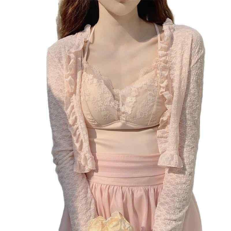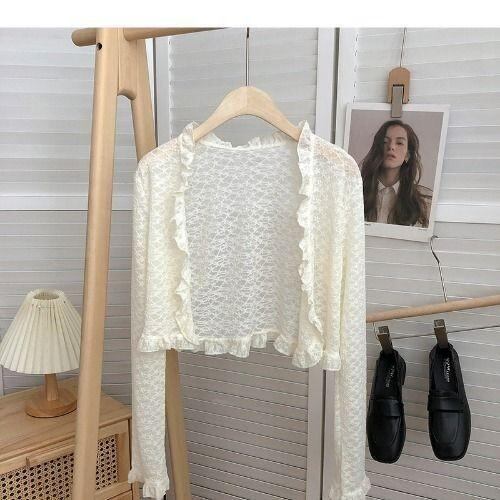 カーディガン レディース レース UVカット ショート丈 長袖 薄手 羽織り 冷房対策 日焼け防止 シアー素材 ポリエステル トップス ボレロ