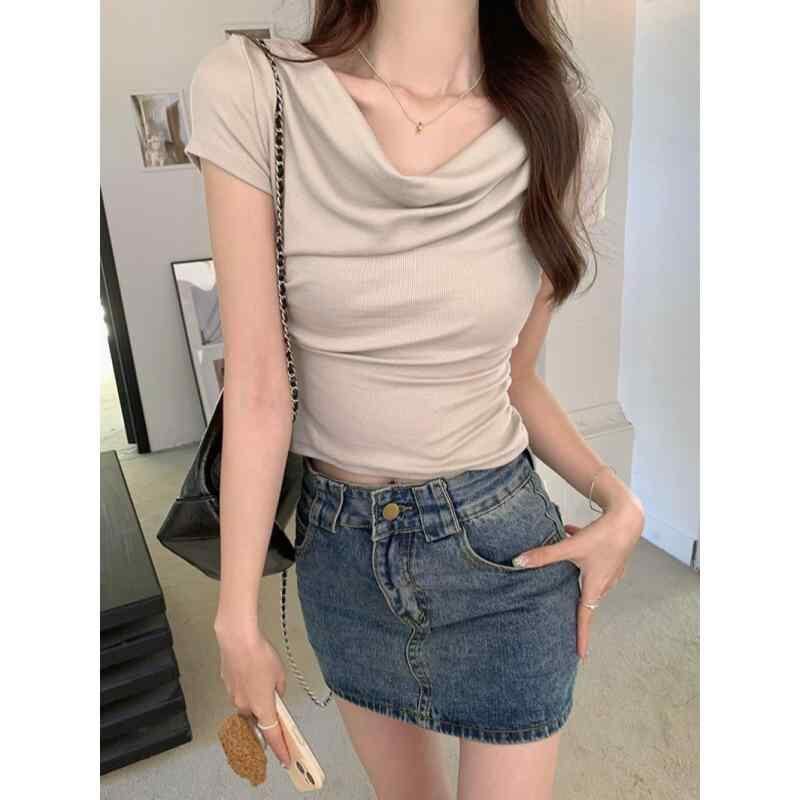 Tシャツ レディース 小柄 低身長向け ショート丈 半袖 無地 再生繊維 スパンデックス スリムフィット カジュアル 通勤 オフィス トップス インナー
