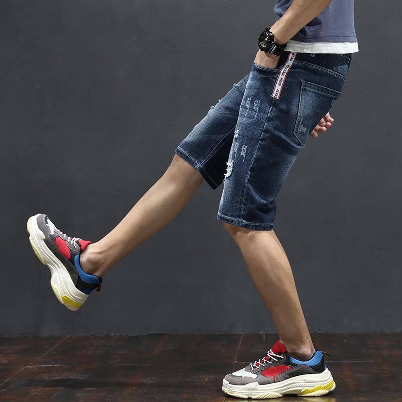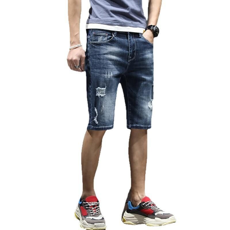 デニムパンツ メンズ 夏用 ハーフパンツ ショートパンツ 5分丈 7分丈 薄手 ゆったり ダメージ加工 ウォッシュ加工 コットン ブルー カジュアル ストリート ストレート ストレッチ