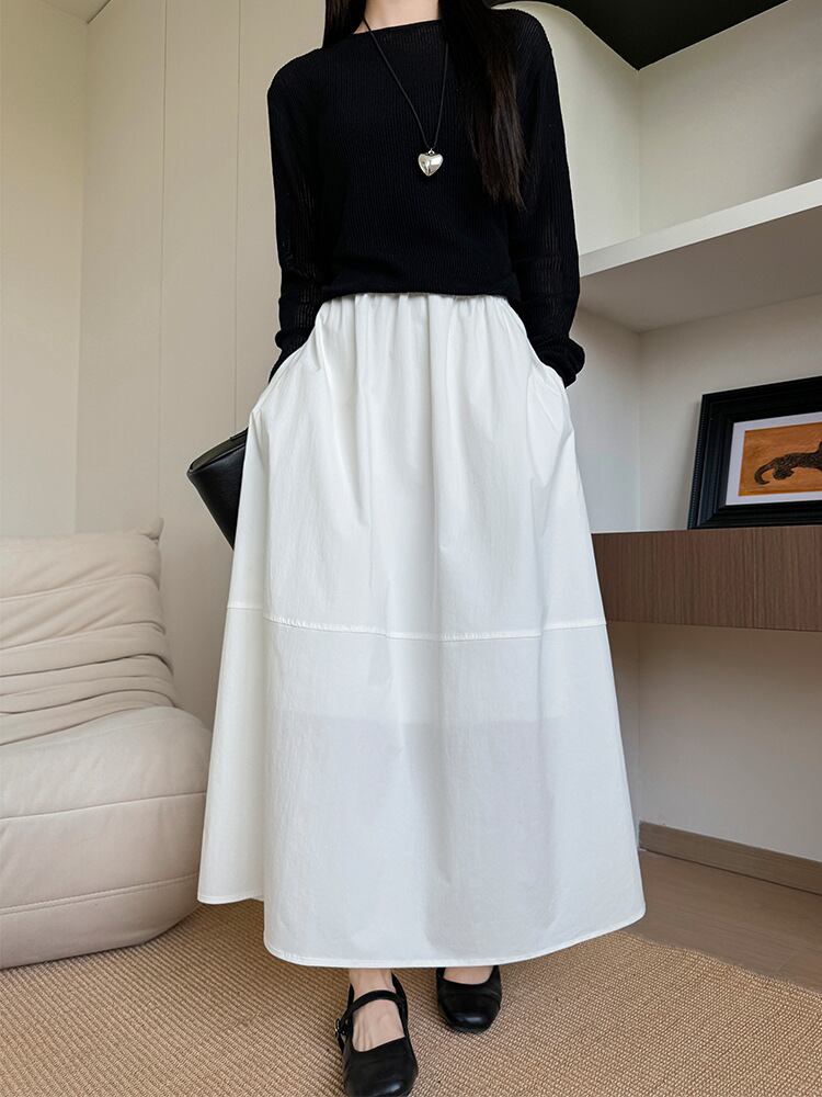 スカート レディース 上質 切り替え Aライン フレアスカート ミディ丈 ミモレ丈 着痩せ スタイルアップ効果 伸縮性 コットン ナイロン 無地 韓国ファッション カジュアル オフィス 通勤 デイリー ホワイト ブラック ネイビー ボトムス