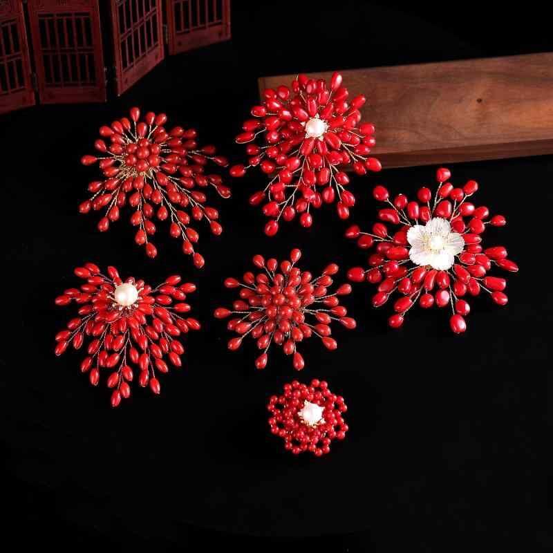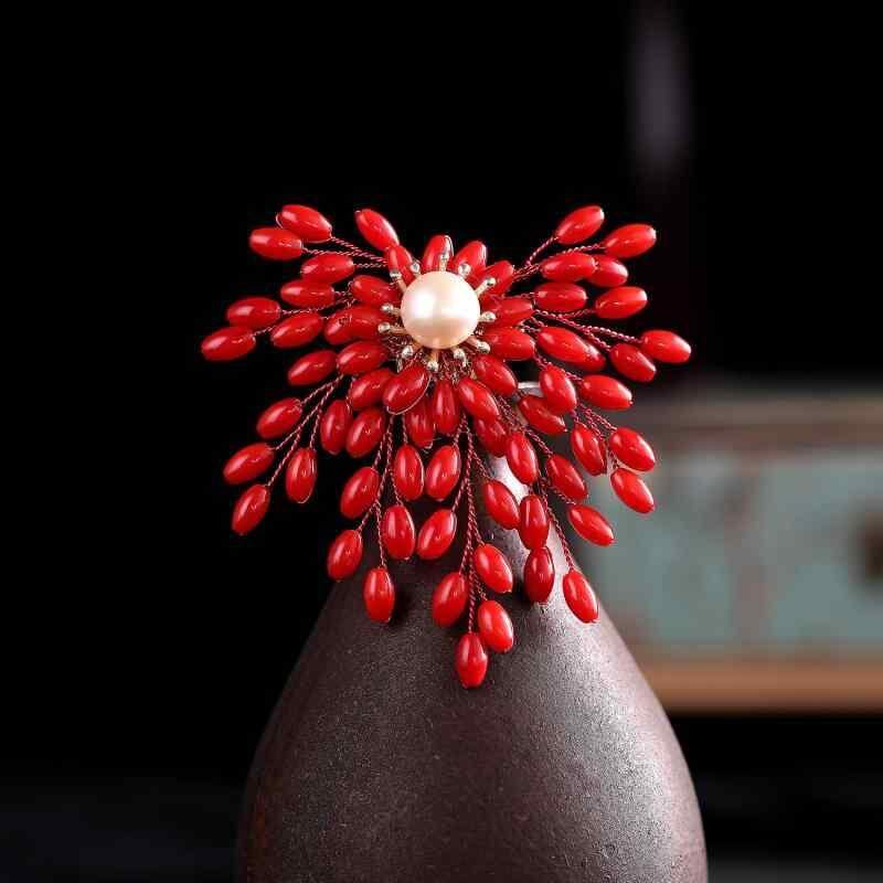 ブローチ レディース 女性用 ハンドメイド 天然貝殻 真珠 パール 珊瑚 エレガント 高級感 レトロ クラシック コサージュ アウター コート ジャケット ドレス ワンピース フォーマル パーティー カジュアル レッド系
