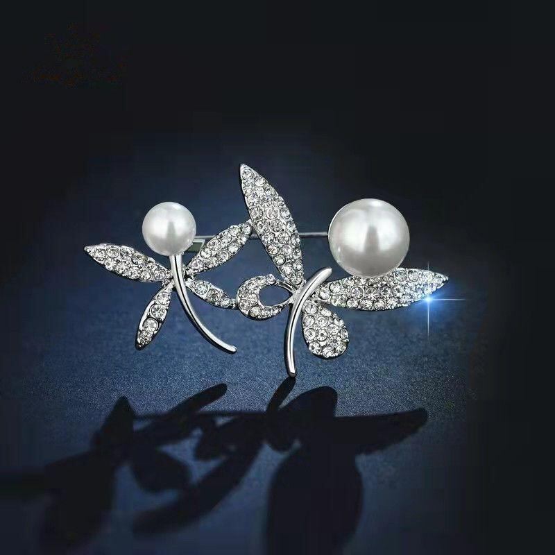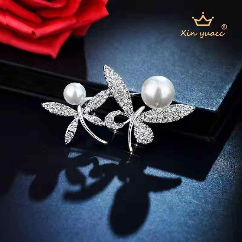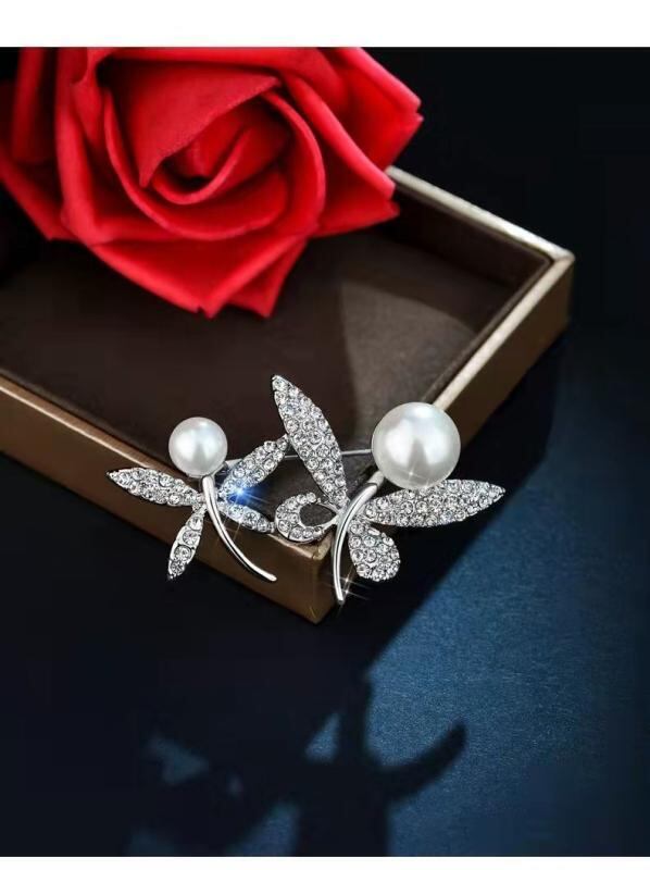 ブローチ レディース 蝶 ラインストーン フェイクパール きらめき かわいい おしゃれ シンプル 万能 上品 エレガント 気品 結婚式 パーティー フォーマル 発表会 合金製 電気メッキ加工 シルバーカラー 秋冬 アクセサリー