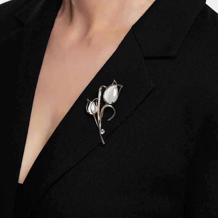 ブローチ レディース チューリップ 花 フラワー 高級感 個性的 インスタ風 上品 繊細 銅製 スカーフクリップ ファッション 万能 ピン スーツ ジャケット ワンピース フォーマル カジュアル パーティー 普段使い アクセサリー