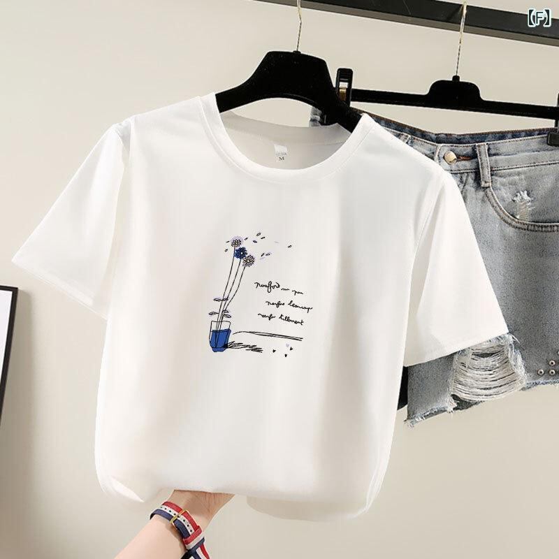Tシャツ レディース ビッグシルエット ゆったり クルーネック 丸首 半袖 プリント ポリエステル スパンデックス 再生繊維 伸縮性 快適な着心地 韓国ファッション カジュアル 普段使い リラックス