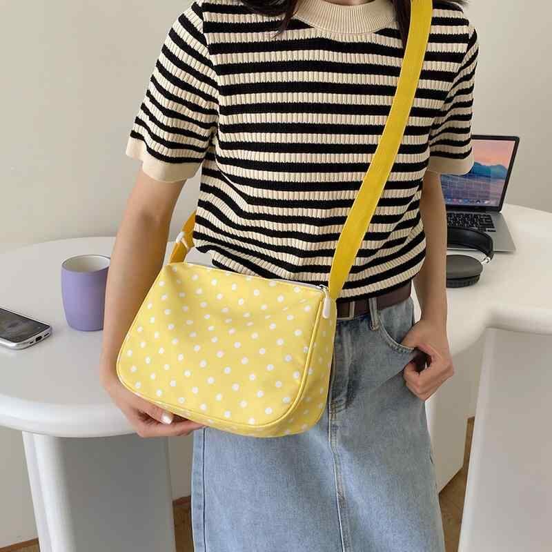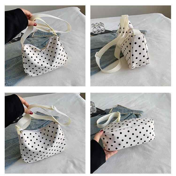 バッグ レディース 日本風 ドット柄 大容量 リラックス感 ナチュラル 肩掛け鞄 クロスボディバッグ ナイロン製 ミニスクエア 横型 柔らか ファスナー開閉 スマホポケット付き 普段使い デイリーユース