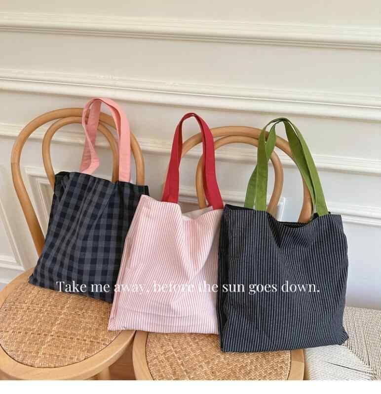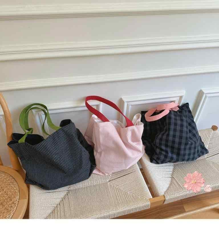 バッグ レディース チェック柄 ストライプ柄 キャンバス生地 ショルダーバッグ トートバッグ 肩掛け鞄 ダブルポケット 二層構造 通勤 日常使い 普段使い 縦型 スクエア 黒 ピンク 多機能
