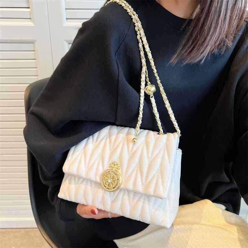バッグ レディース 韓国風 キルティング チェーン ショルダーバッグ 斜め掛け 鞄 ミニ スクエア PUレザー エレガント スタイリッシュ 普段使い デイリーユース 黒 白 フラップ開閉 ソフト コンパクト