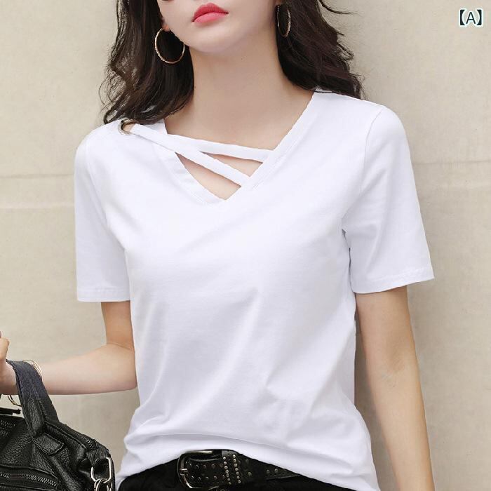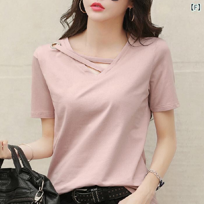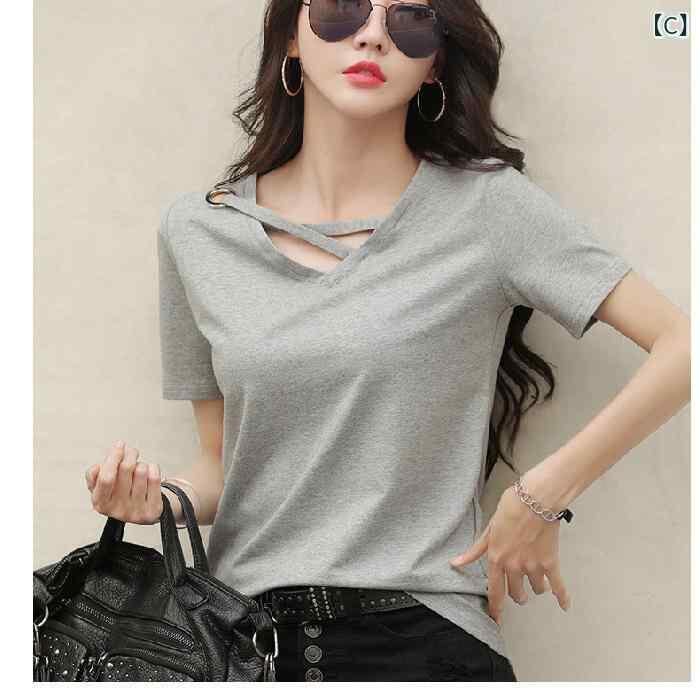Tシャツ レディース 半袖 Vネック トップス カットソー ゆったり ビッグシルエット ルーズフィット 無地 ポリエステル スパンデックス 再生繊維 韓国風 カジュアル 普段使い 学生 女性