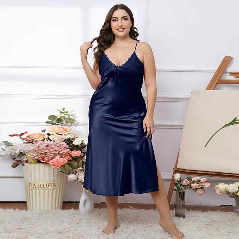 ネグリジェ レディース 大きいサイズ ゆったり キャミソール ロング丈 マキシ丈 接触冷感 涼しい シルク風 ポリエステル ルームウェア 部屋着 寝間着 パジャマ 快適 夏