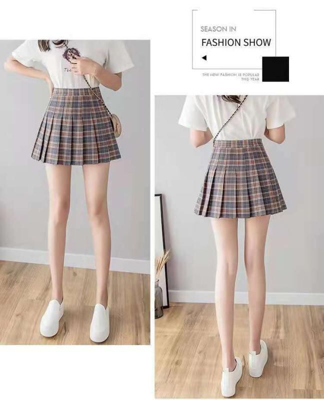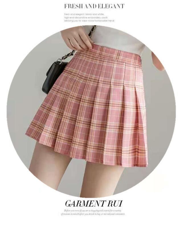 ミニスカート レディース ハイウエスト プリーツ Aライン チェック柄 JK風 着痩せ 大きいサイズ対応 ポリエステル素材 かわいい 甘め カジュアル 大人可愛い グレー系 ピンク系 ネイビー ブラック