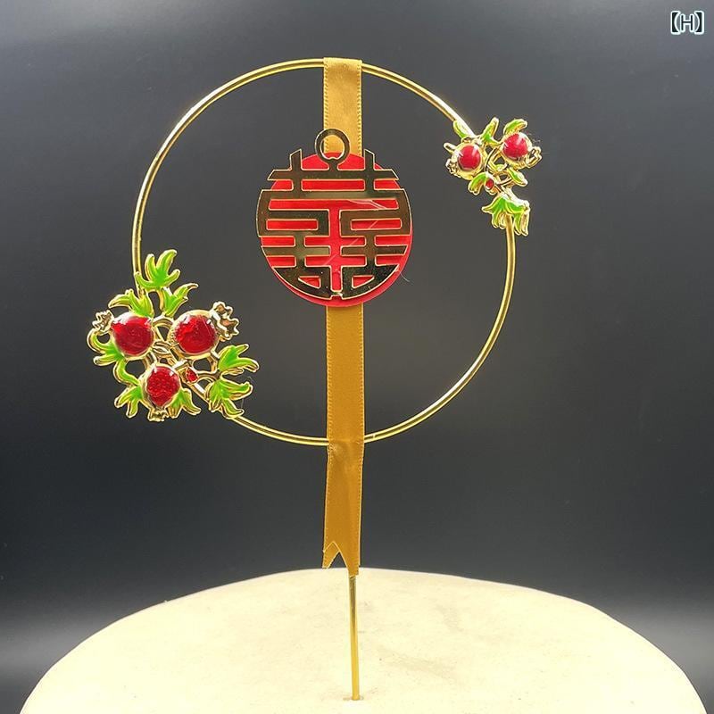 ケーキデコレーション ウェディング 結婚式 中国風 中華風 クラシック レトロ 鳳凰 鳳凰簪 タッセル 喜文字 双喜文字 瓔珞 パール ケーキトッパー ケーキピック 金属製
