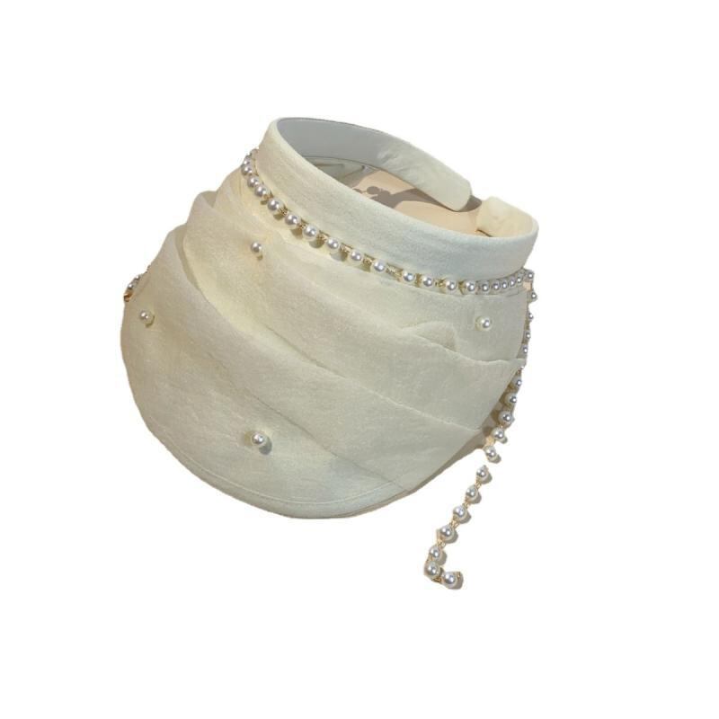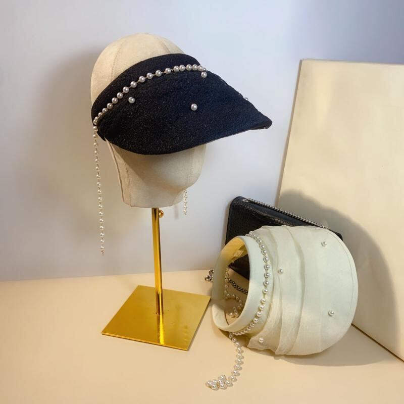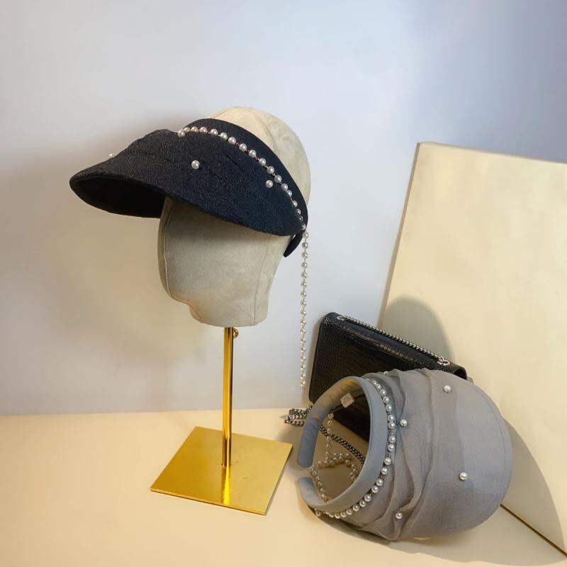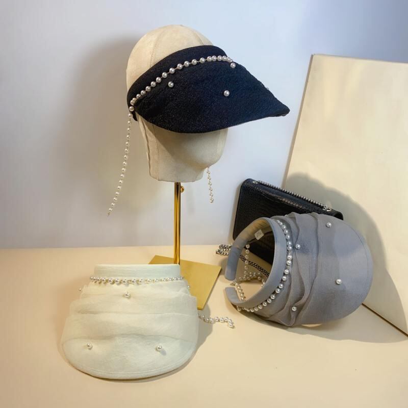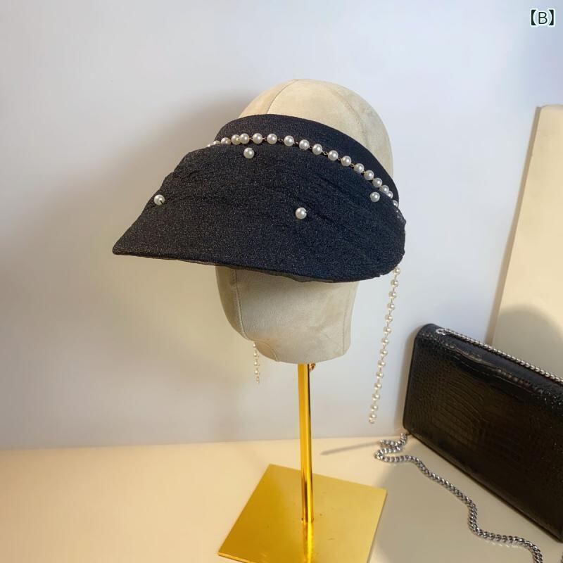サンバイザー パール オーガンジー プリーツ メッシュ つば広 UVカット 日焼け対策 通気性 夏用 アウトドア レジャー ビーチ 旅行 リゾート エレガント ファッション ベージュ ブラック グレー