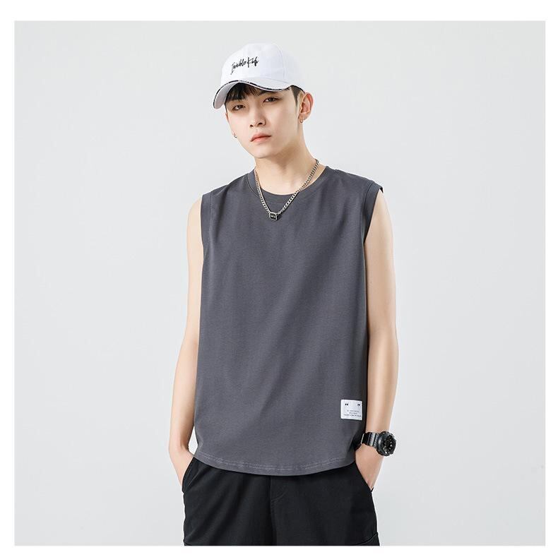 タンクトップ メンズ 男性用 夏 無地 スポーツ ジム トレーニング フィットネス ノースリーブ トップス ゆったり ルーズフィット ビッグシルエット 綿 コットン カジュアル 普段使い 黒 白 ダークグレー