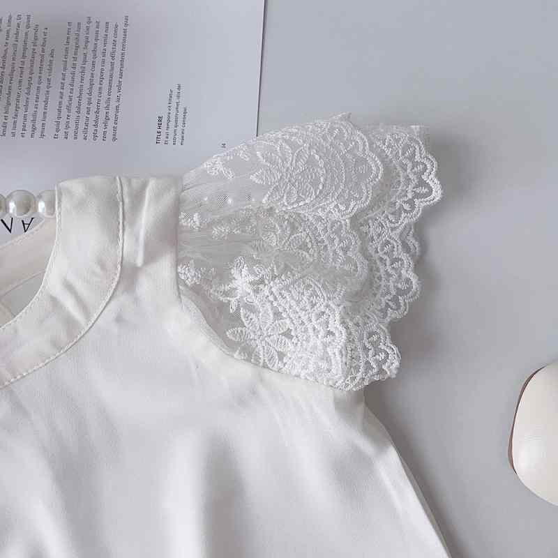 ブラウス 女児 キッズ 女の子 幼児 小学生 無地 半袖 ラウンドネック レース 夏 トップス インナー 重ね着 ポリエステル ホワイト カジュアル デイリーユース