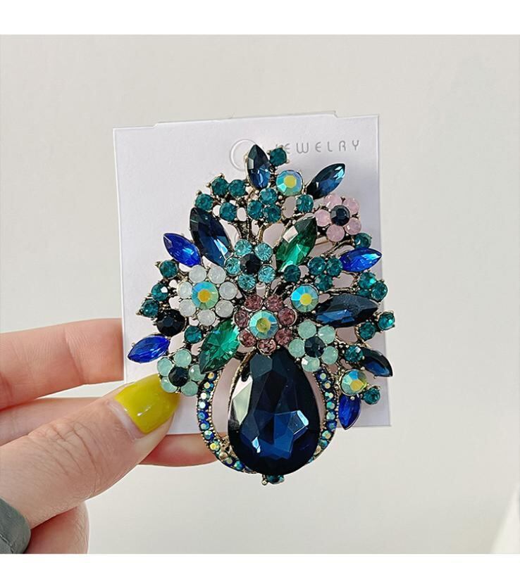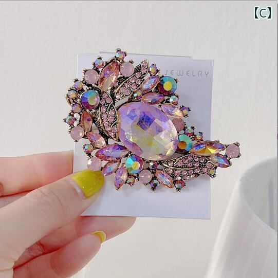 ブローチ レディース 欧米風 レトロ ファッション エレガント 気品 高級感 煌めく ラインストーン 宝石 花モチーフ スーツ ジャケット フォーマル ドレス 普段使い アクセント