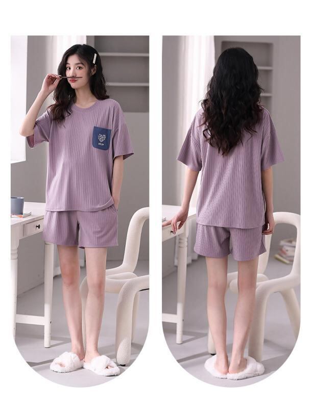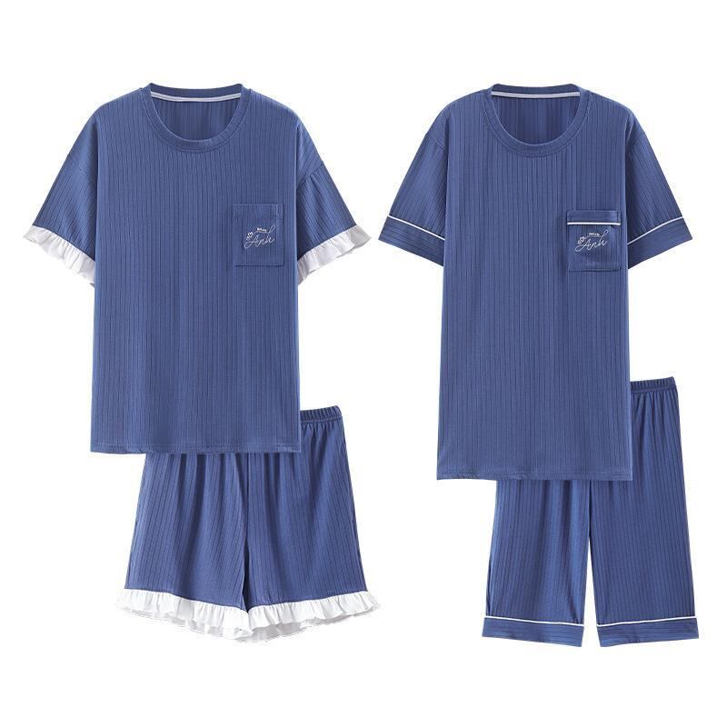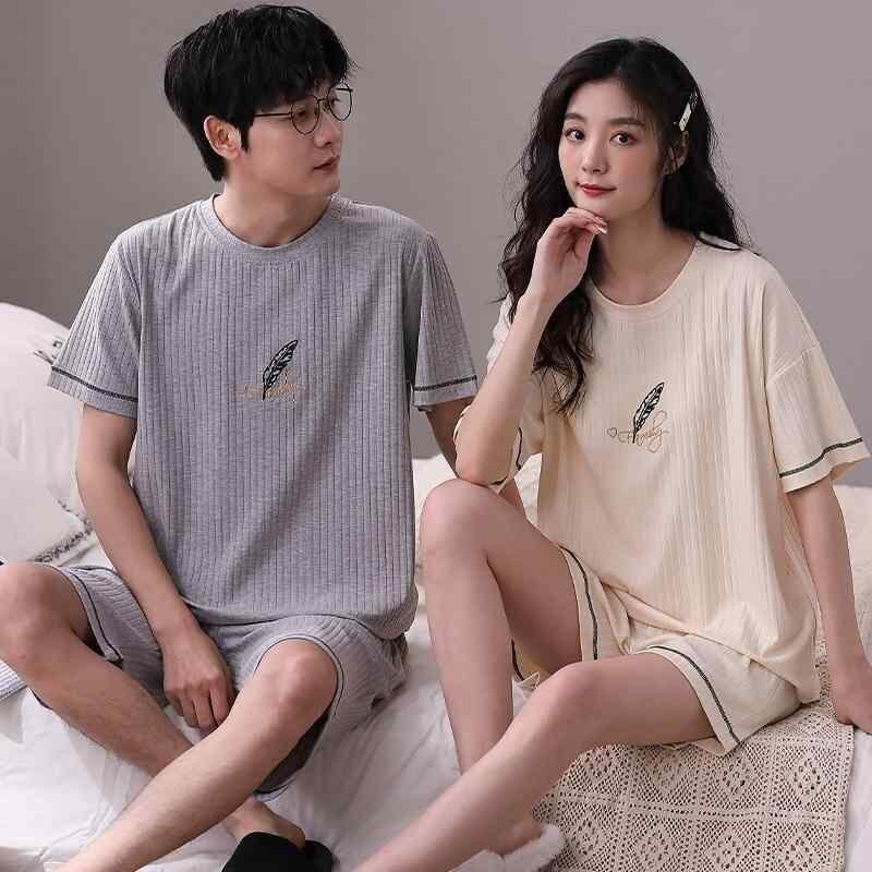 パジャマ ルームウェア カップル モーダル 男女兼用 夏用 半袖 接触冷感 レーヨン キャラクター柄 シンプル 薄手 セットアップ 通気性 快適 ストレッチ ラウンドネック ショートパンツ 普段使い ワンマイルウェア