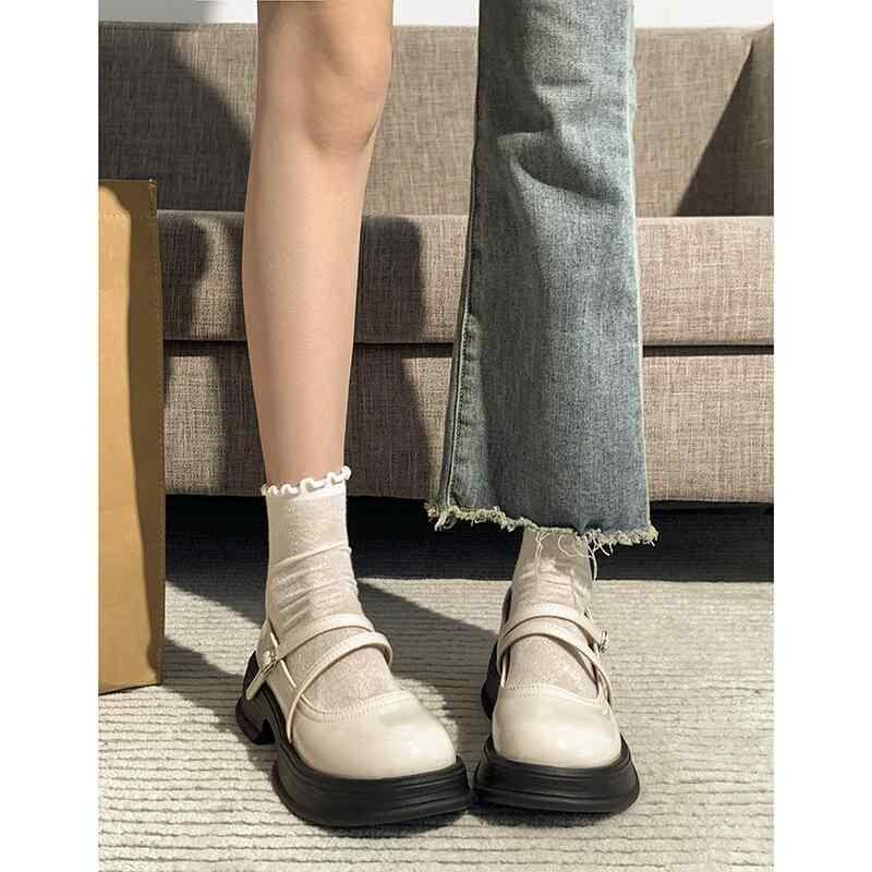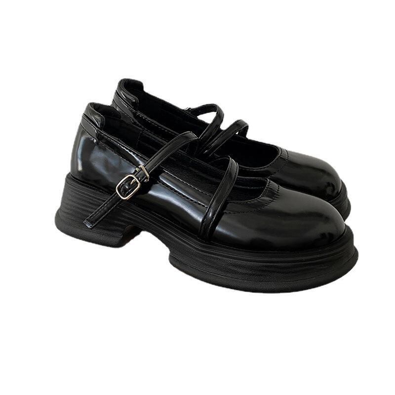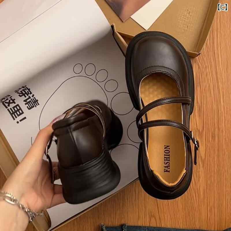 パンプス レディース ラウンドトゥ 太ヒール 厚底 メリージェーン ロリータ レトロ クラシック レザー調 合成皮革 ミドルヒール デイリーユース 通勤 オフィス カジュアル ブラック ベージュ ブラウン 安定感 普段使い