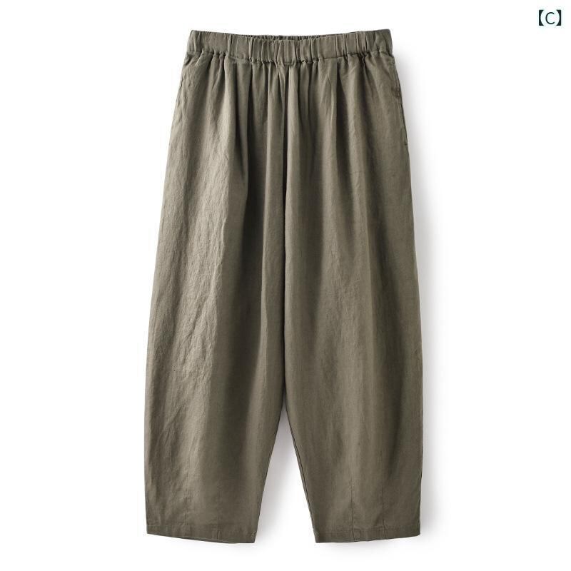パンツ レディース バルーンパンツ ジョガーパンツ リネン 麻 ゆったり ルーズフィット ハイウエスト 夏 通気性 涼しい カジュアル ナチュラル ロング丈 普段使い 部屋着