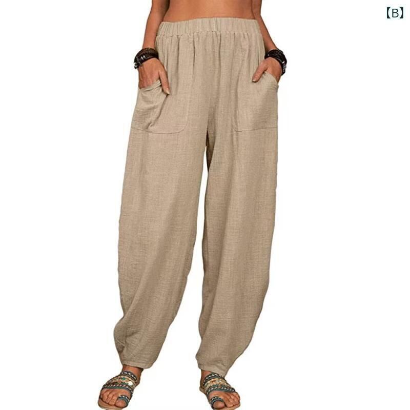 パンツ レディース ゆったり ルーズフィット ワイド 無地 綿麻 コットンリネン ハーレム サルエル クロップド丈 九分丈 部屋着 ルームウェア カジュアル 普段使い 白 黒 グレー カーキ ネイビー