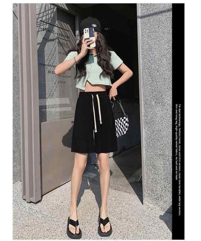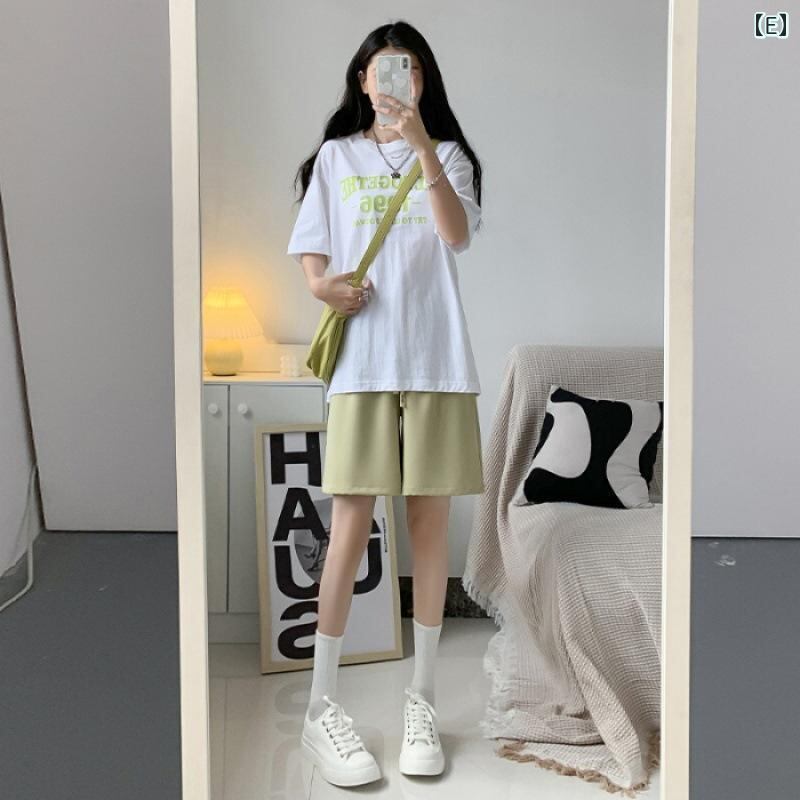 ショートパンツ レディース 接触冷感 薄手 ポリエステル ハーフパンツ ハイウエスト 細見え スポーツ ランニング フィットネス 大きいサイズ ゆったり ワイド カジュアル 普段使い 五分丈 夏用 黒 ライトベージュ ピンク ブルー グリーン
