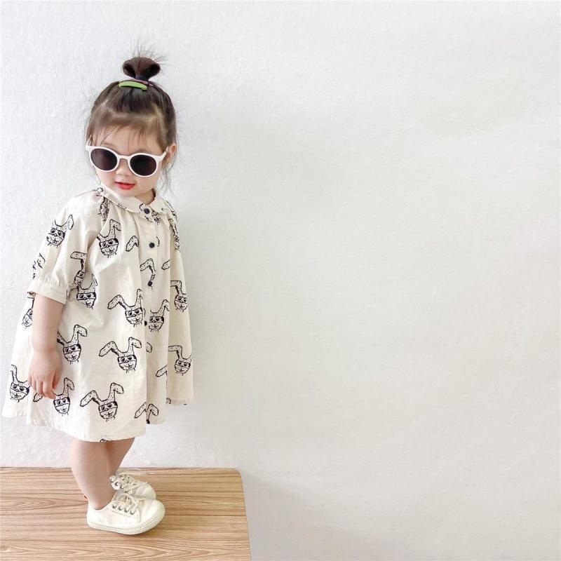 ワンピース 女の子 ベビー キッズ 綿 コットン 高級感 プリンセスドレス エレガント 上品スタイル かわいい おしゃれ アニマル柄 Aライン 柔らか加工 夏用 アイボリー