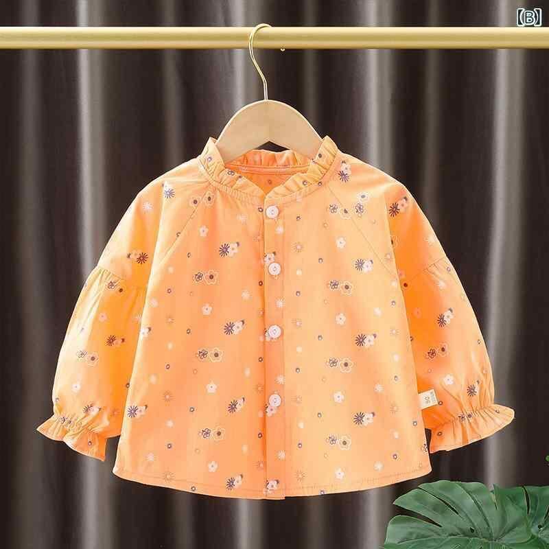 シャツ 女の子 キッズ ベビー 長袖 小花柄 スタンドカラー フリル 綿 コットン カジュアル 普段使い お出かけ 通園 通学 韓国風 おしゃれ 上品 かわいい ブラウス トップス