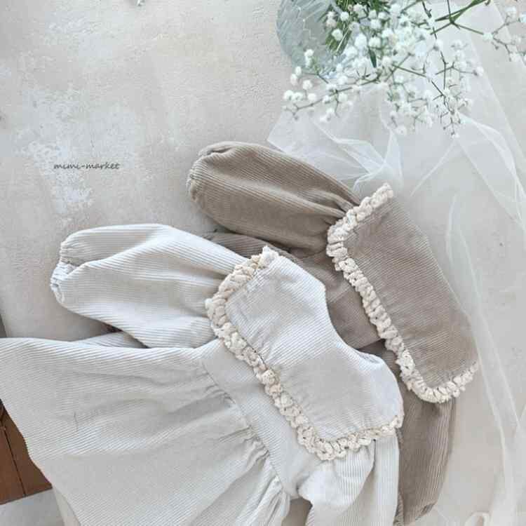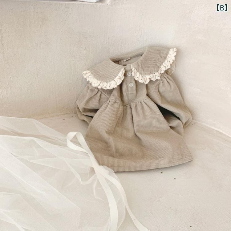 シャツワンピース 女の子 ベビー キッズ 綿100% コーデュロイ 襟付き 長袖 フリル 無地 韓国ファッション カジュアル かわいい 普段使い 着回し 通園 お出かけ ソフトタッチ アイボリー ベージュ 春 秋