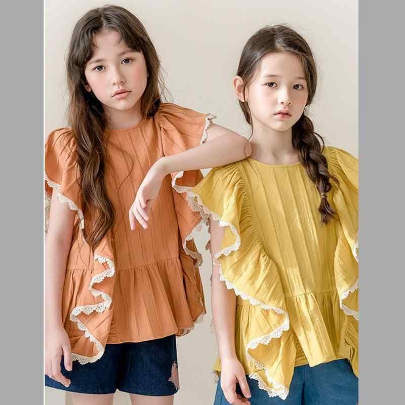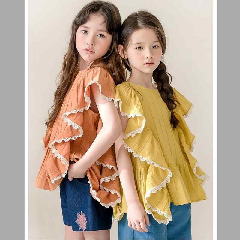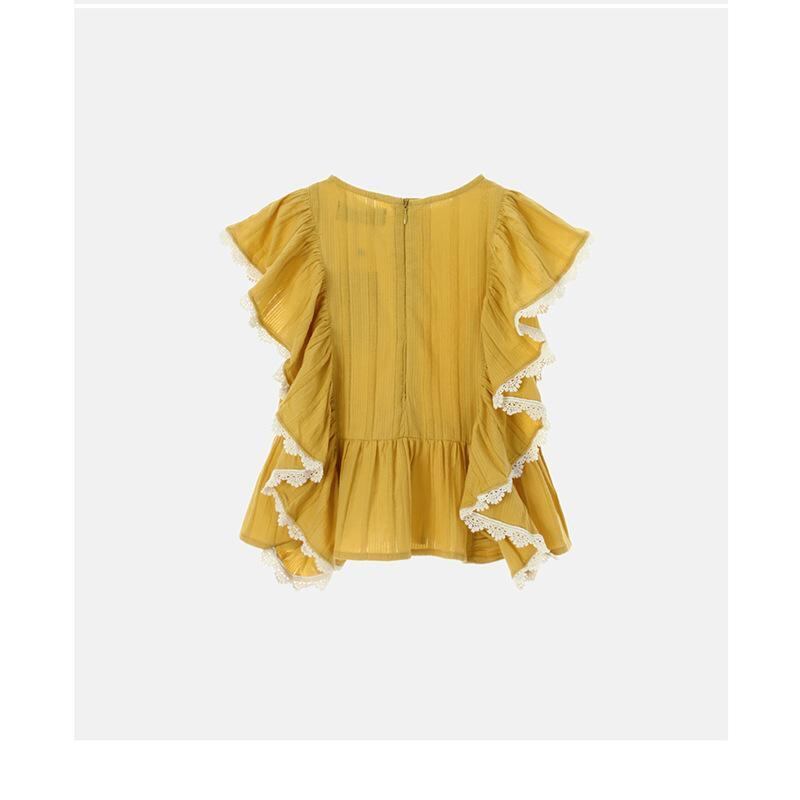ブラウス キッズ 女の子 ジュニア 高学年 フレンチ スウィート ガーリー ノースリーブ フリル ラウンドネック コットン 綿100% 柔らか素材 ソフトな着心地 お出かけ カジュアルスタイル オールシーズン