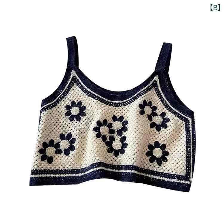 キャミソール レディース 刺繍 透かし編み ニット ショート丈 ノースリーブ インナー コットン 花柄 クロシェ編み 清涼感 ゆったり リラックス フェミニン かわいい トップス