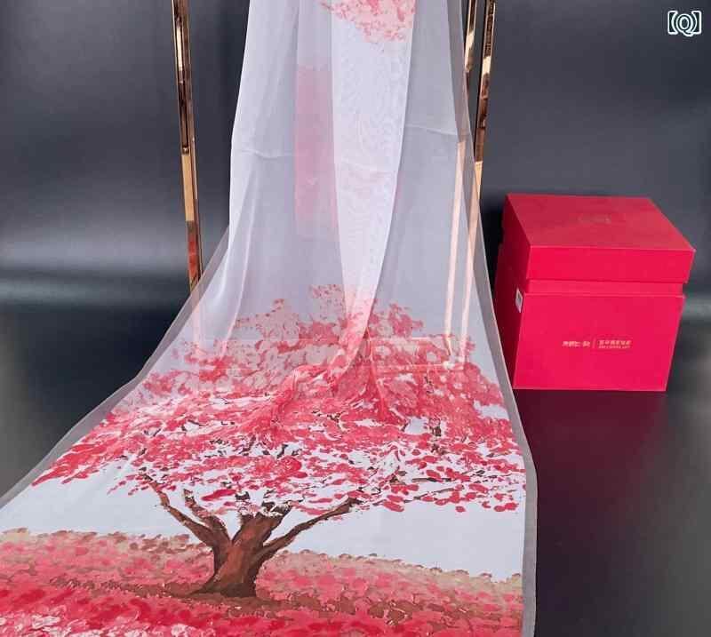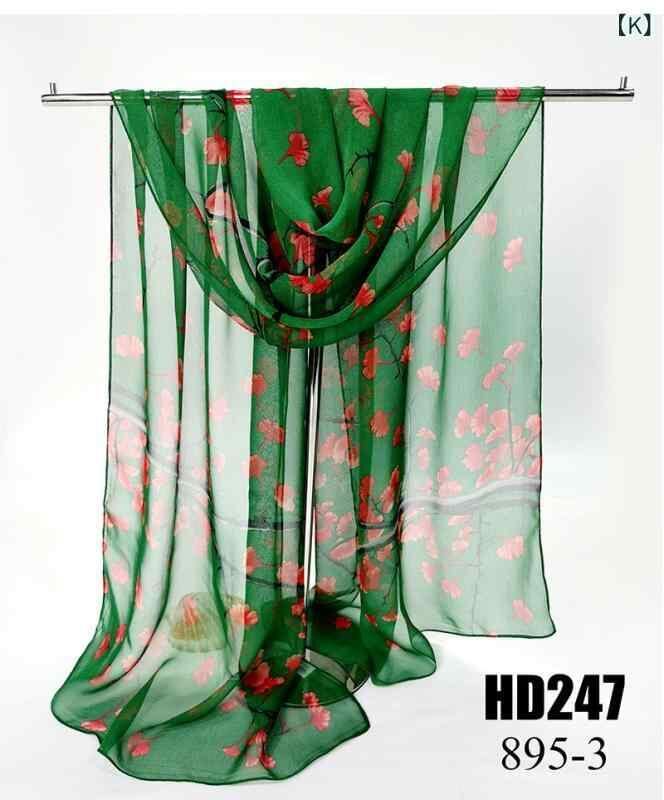 ストール レディース 女性用 シルク調 ジョーゼット 大判 薄手 軽量 春秋 ファッション 通勤 オフィス 旅行 吉祥柄 プリント オリエンタル柄