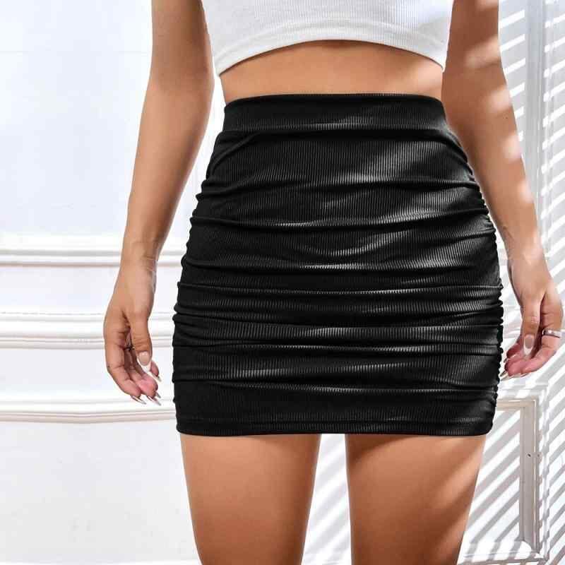 スカート レディース ハイウエスト プリーツ ギャザー ミニ丈 タイトスカート 伸縮性 リブニット ポリエステル ブラック 無地 セクシー 大人カジュアル きれいめ デート