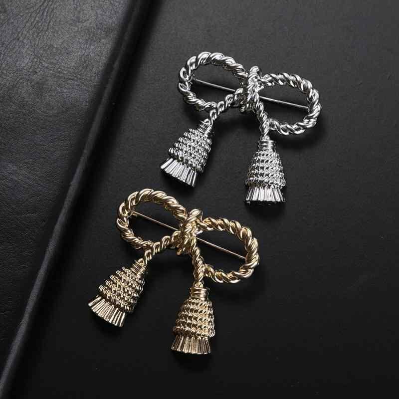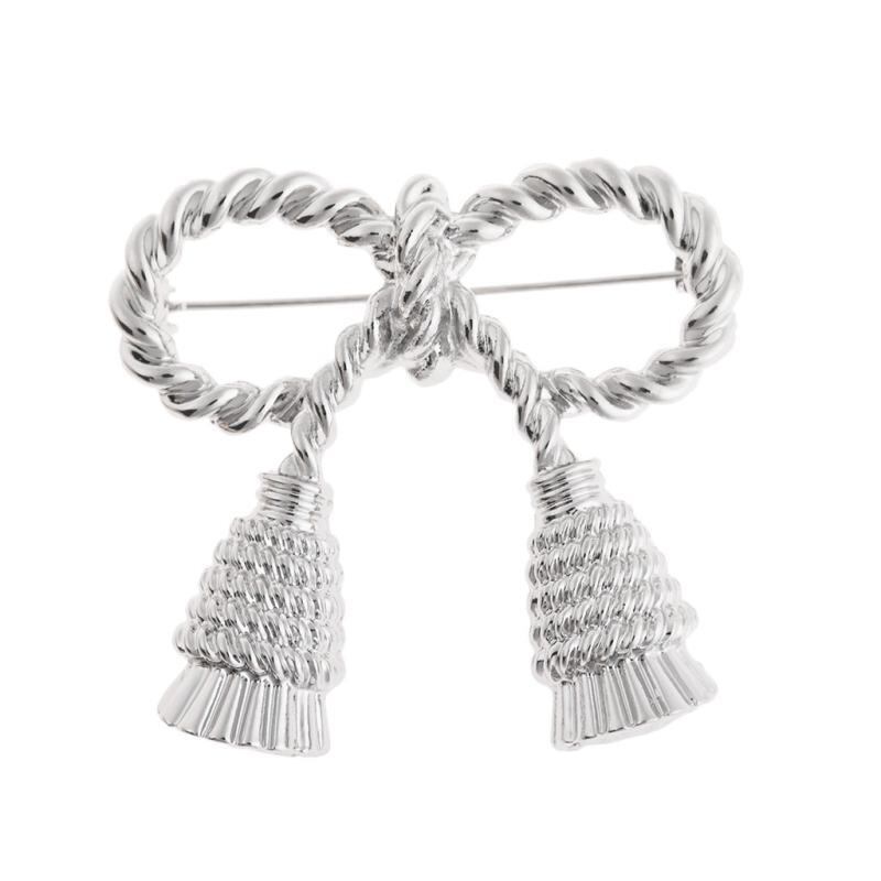 ブローチ レディース 高級感 エレガント 合金製 電鍍加工 欧米風 フェミニン スイート 服 ズレ防止 露出防止 固定ピン 中国結びモチーフ リボン 蝶々結び シルバー ゴールド アクセサリー 装飾品
