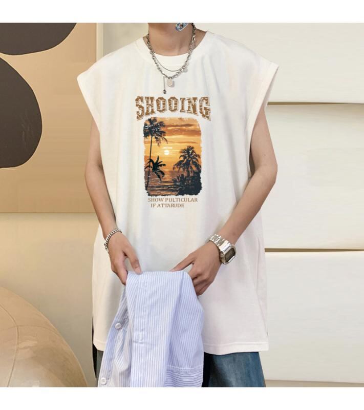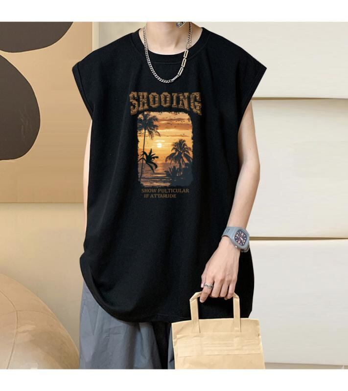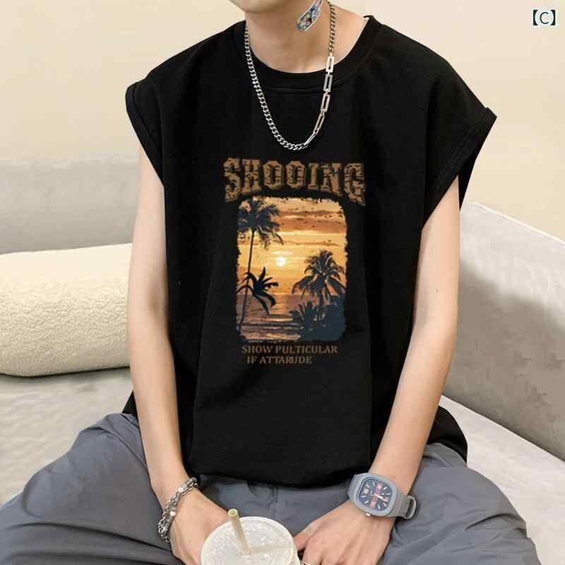 タンクトップ メンズ 男性用 ルーズフィット ビッグシルエット ゆったり 綿100% コットン スポーツ フィットネス トレーニング ストリート系 ハイストリート カジュアル 夏 薄手 ロゴプリント 韓国ファッション