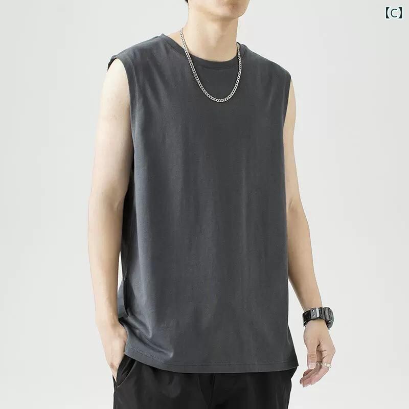 タンクトップ メンズ ゆったり コットン100% 厚手 ノースリーブ 無地 スポーツウェア トレーニング インナー 夏用 リラックスフィット カジュアル オーバーサイズ 部屋着 普段使い