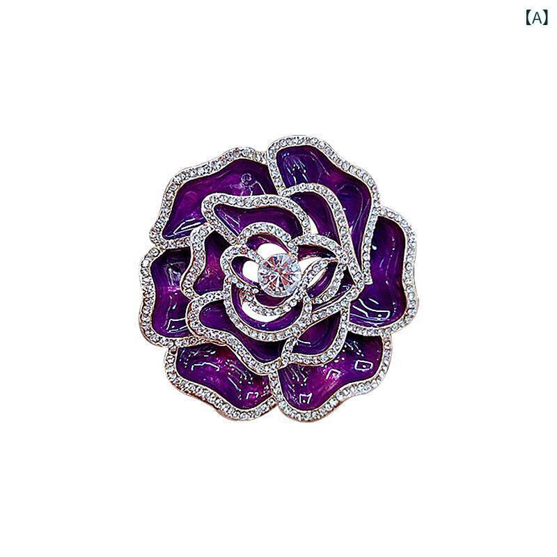 ブローチ レディース 女性用 紫バラ 花モチーフ エレガント 上品 華やか おしゃれ はだけ防止 多機能 合金製 カーディガン 襟元 通勤 オフィス フォーマル 服飾小物 アクセサリー | cybercart