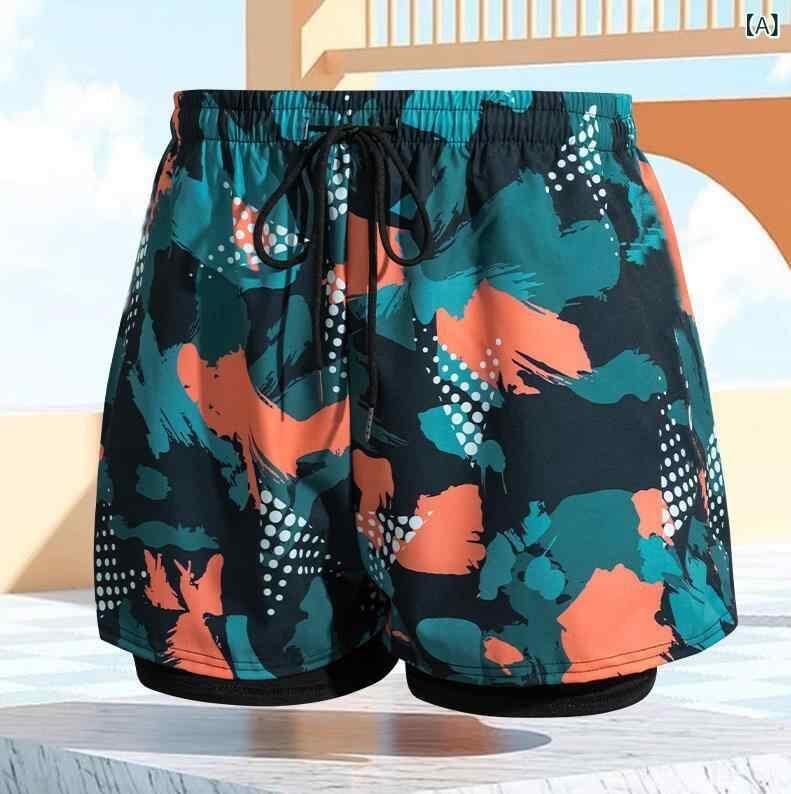スイムパンツ メンズ 男性用 体型カバー ゆったり ルーズフィット ダブルレイヤー 透け防止設計 速乾 高機能 ポリエステル素材 おしゃれ ビーチ プール 海水浴 マリンスポーツ 水陸両用 オレンジ イエロー