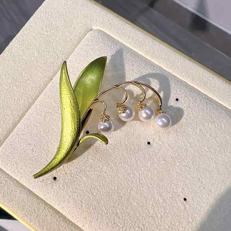 胸針 レディース 女性用 鈴蘭 スズラン フラワー DIY アクセサリー パーツ パール 銅製 マットゴールドカラー 装飾 空枠 台座 上品 エレガント ナチュラル
