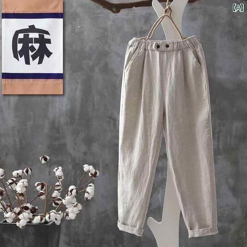 カジュアルパンツ レディース 綿麻 ハーレムパンツ 九分丈 テーパードパンツ クロップドパンツ ハイウエスト ポケット付き 夏 春 秋 ゆったり ルーズ 細見え 大きいサイズ ストレッチ 綺麗め 通勤 着回し