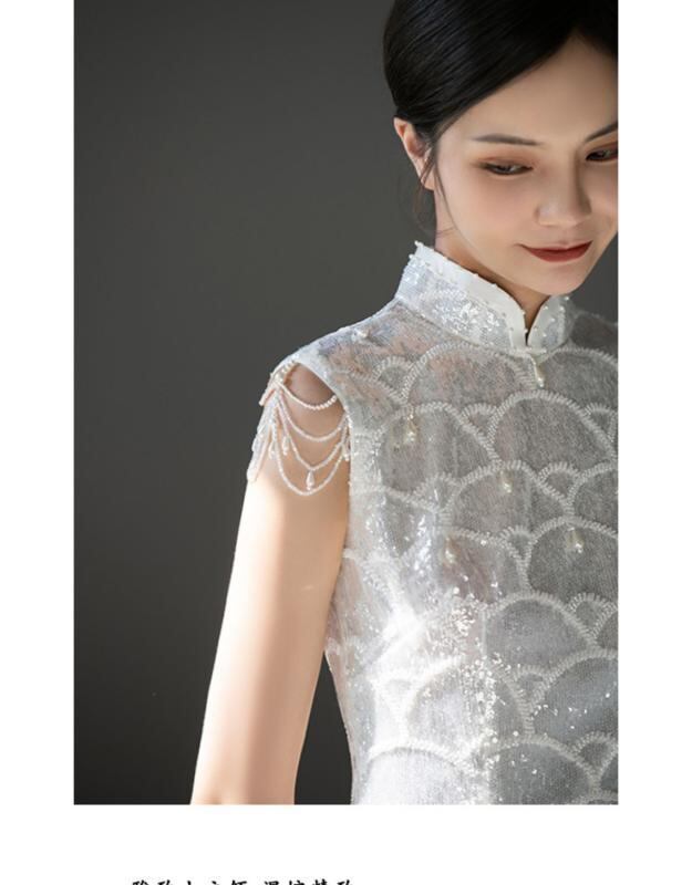チャイナドレス レディース 結婚式 披露宴 二次会 ブライダル フォーマルドレス パーティードレス ロング丈 レース ノースリーブ スタンドカラー ビーズ装飾 エレガント 中国風 レトロ