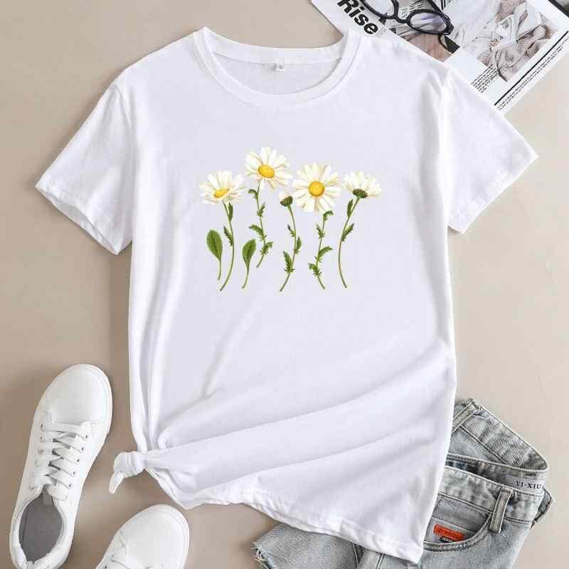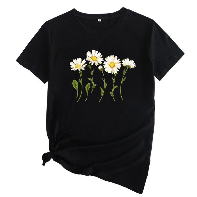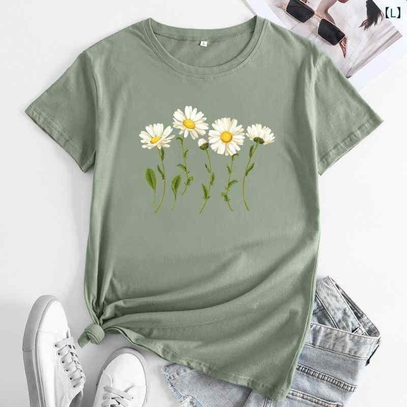 Tシャツ レディース トップス 丸首 ラウンドネック 半袖 花柄 フラワーデザイン プリント 大きいサイズ ゆったりサイズ コットン 綿100% スリムフィット レギュラー丈 カジュアル デイリーユース 快適 普段着